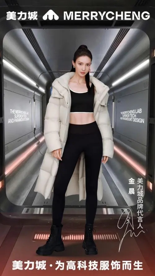 據(jù)了解,美力城為貓人集團(tuán)下的新銳高科技服飾品牌,被貓人集團(tuán)董事長游林賦予“千億夢想”并親自下場操刀,共預(yù)計涉足六大品類,分別為:羽絨服、上衣、下裝、內(nèi)衣、童裝及輕戶外。歷經(jīng)兩個半月的洽談,美力城最終選定金晨為代言人。本次金晨合作款均為秋冬主推款,羽絨服搭配背心、鯊魚褲,盡顯科技范兒。