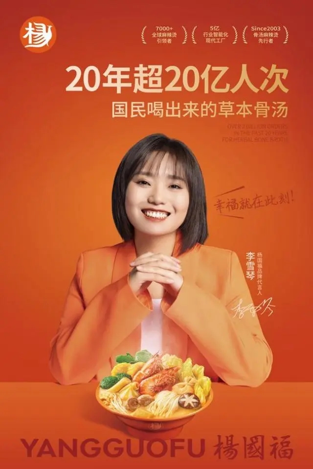 邀請(qǐng)李雪琴作為首位品牌代言人,她的幽默風(fēng)格和親和力,為國(guó)民所喜愛(ài),將為楊國(guó)福麻辣燙注入更多的趣味性和互動(dòng)性,讓品牌形象更加鮮活、生動(dòng)。