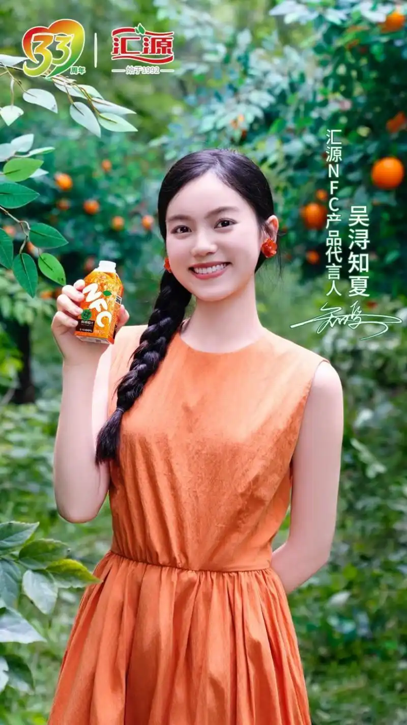 出生于2004年的吳潯知夏,形象陽(yáng)光親和、氣質(zhì)清新自然,現(xiàn)就讀于貴州大學(xué)。她不僅在表演方面頗具天賦,還熱愛(ài)舞蹈、馬術(shù)等。她的形象及氣質(zhì),與匯源NFC系列果汁所倡導(dǎo)的健康、活力、自然的理念十分契合。她表示:“很高興能夠成為匯源NFC產(chǎn)品廣告片的主角并為之代言,這一系列產(chǎn)品讓我感受到了陽(yáng)光、自然的味道,我自己非常喜歡,也希望能通過(guò)我,將這份健康與美味帶給更多人”。