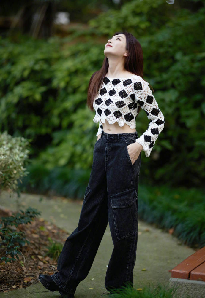 江疏影穿黑白格上衣告別夏日 優(yōu)雅知性清冷感十足