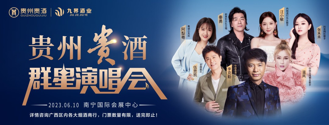 貴州貴酒.群星演唱會(huì)將于6月10日將在南寧國(guó)際會(huì)展中心盛大開(kāi)演。