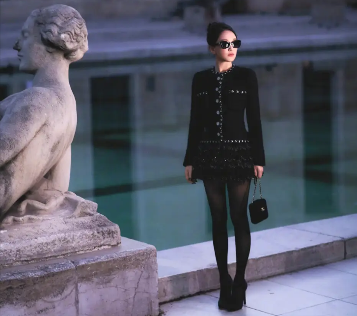 周迅巴黎看秀造型曝光 穿黑色小香風(fēng)套裝性感酷颯