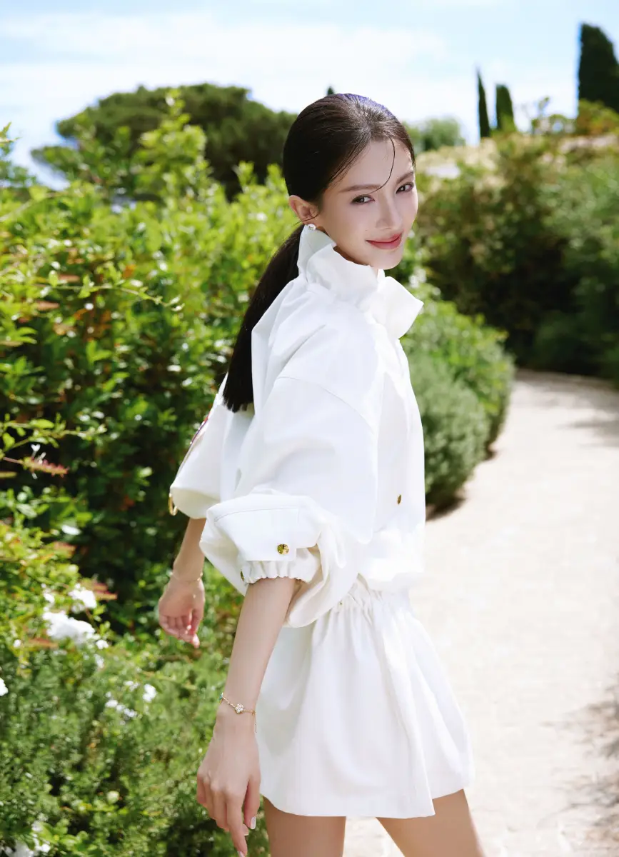 金晨穿白裙漫步法國(guó)小鎮(zhèn) 無(wú)盡綠蔭旁尋仲夏之夢(mèng)