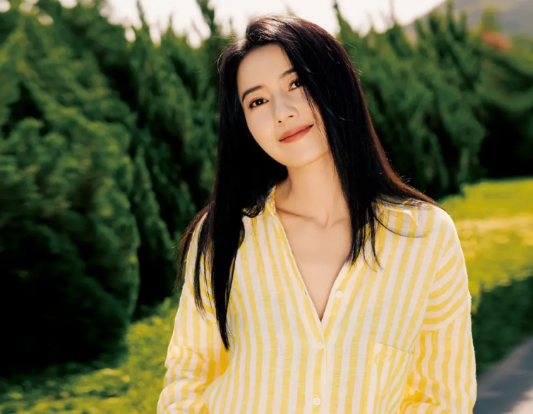 近日,高圓圓工作室曬出了一組她身穿黃白襯衫的造型圖。