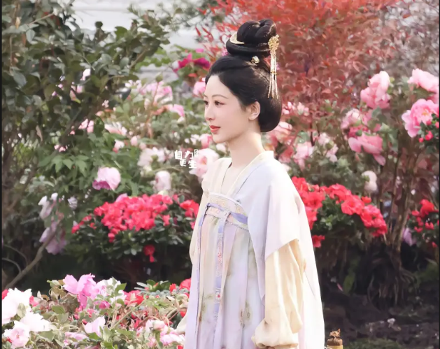 4月30日,楊紫(明星經(jīng)紀(jì)人)新劇《國色芳華》曝紫衣路透,楊紫一身唐制漢服置身牡丹花園中,好美!
