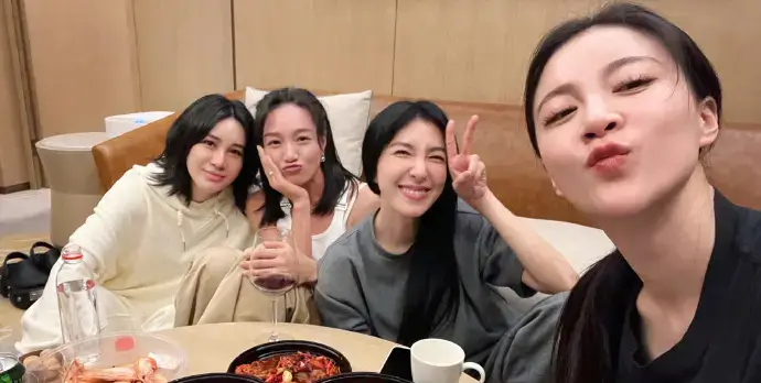 4月11日,朱丹和楊謹華、尚雯婕、李嘉格合照!一起吃宵夜的局每個人穿著休閑幾乎素顏,臉上洋溢燦爛笑容,姐姐們狀態(tài)都超好。