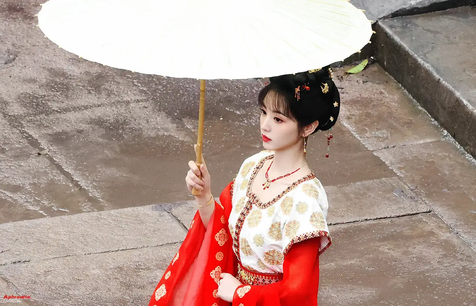田曦薇穿紅色華服精致優(yōu)雅 手撐油紙傘婀娜迷人