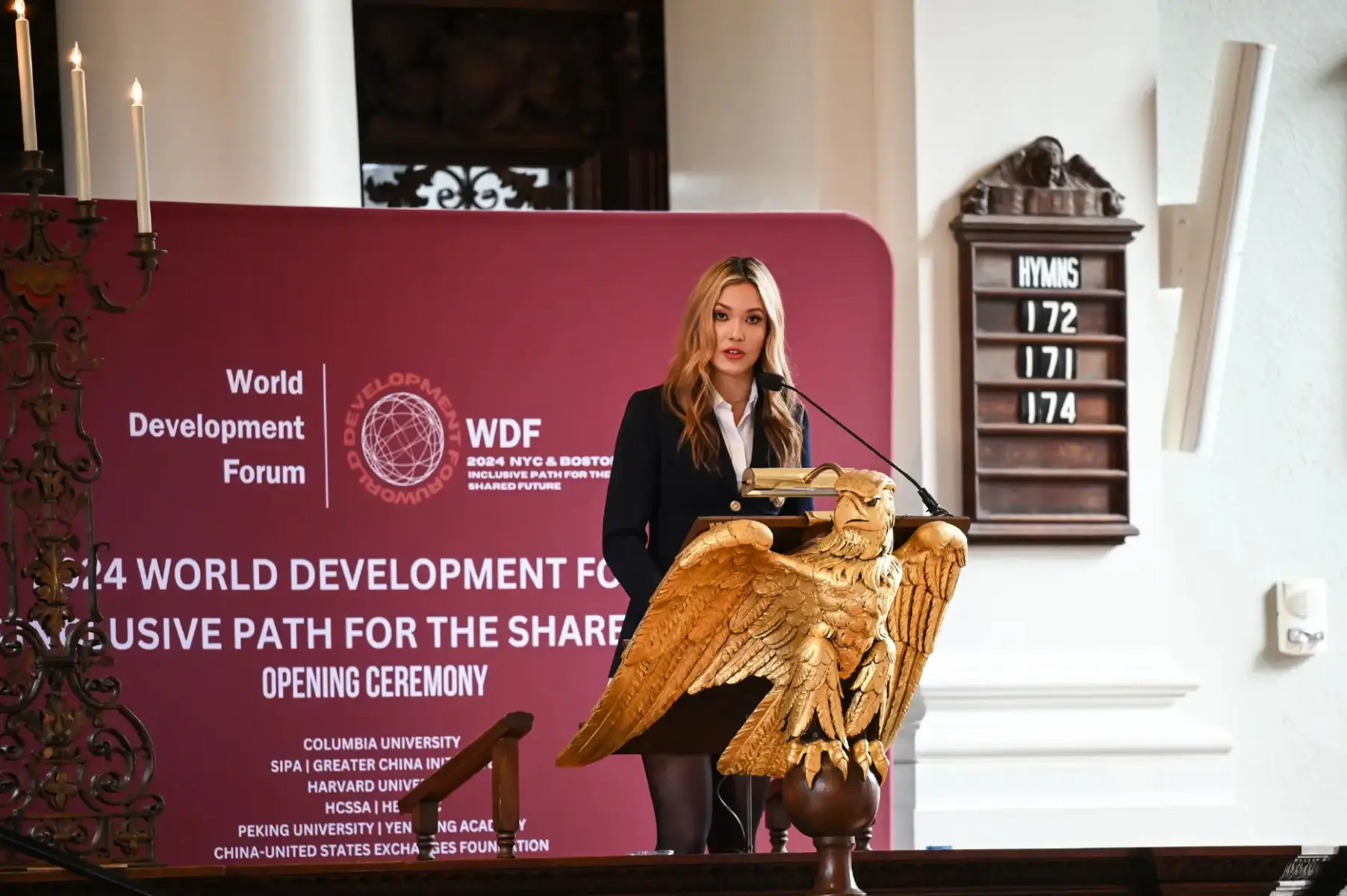 4月6日,谷愛(ài)凌(明星經(jīng)紀(jì)公司)曬出一組哈佛大學(xué)演講照,并發(fā)文稱(chēng):“很榮幸作為青年代表在哈佛大學(xué)舉辦的世界發(fā)展論壇開(kāi)幕式上發(fā)言。