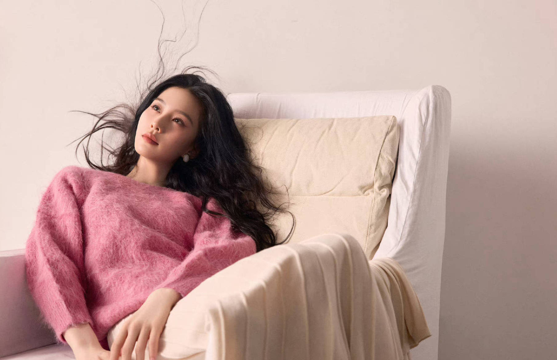 10月30日,劉詩詩最新大片釋出,身穿粉色毛衣,微卷長發(fā)慵懶松弛,戴白色耳飾恬靜溫柔。