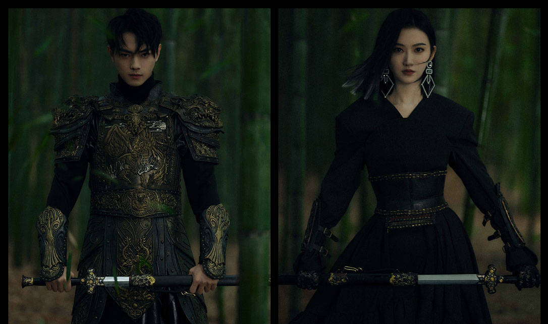 11月3日,許凱與景甜共拍竹林掠影雜志大片,照片中的他們,身著深色系服裝,演繹武俠風格。