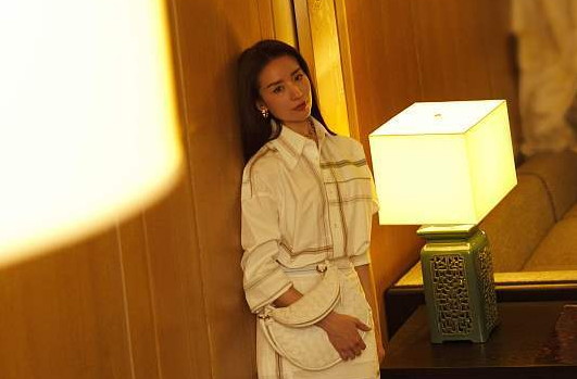 董潔穿白色條紋套裝清冷氣質 身形纖細眼神堅定