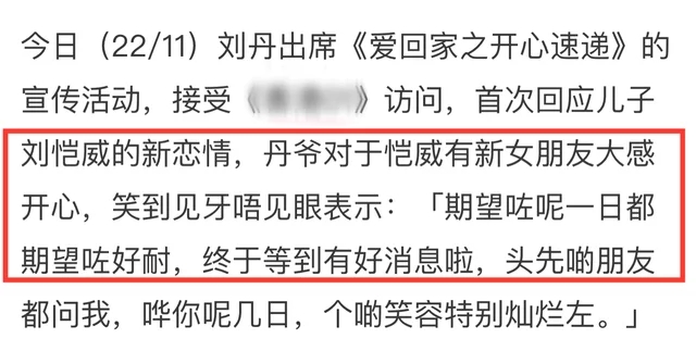 劉丹說話時笑到眼睛都瞇成一條縫,難掩喜悅之情。他說自己一直都很期待兒子能有新戀情,如今終于等到了好消息,每天都高興地合不攏嘴。