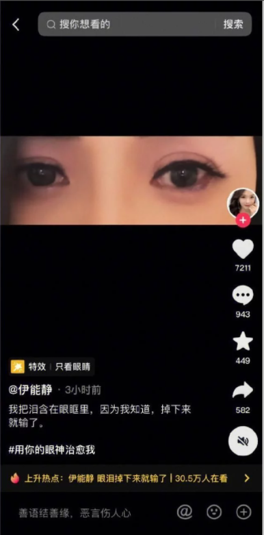 近日,伊能靜(明星經(jīng)紀(jì)公司)在某短視頻平臺(tái),曬了一張雙眸含淚的小視頻并配文,“我把淚含在眼眶里,因?yàn)槲抑?,掉下來就輸?rdquo;。