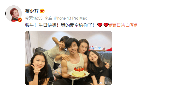 明星經(jīng)紀(jì)公司資訊!5月19日,蔡少芬(明星代言公司)在社交平臺上為49歲老公張晉慶生,發(fā)文稱:“張生!生日快樂!我的愛全給你了!”她還曬出全家福,一家五口同框合影,畫面有愛!