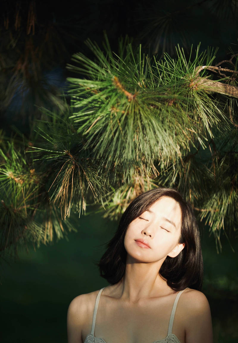 組圖王智穿吊帶鏤空裙秀豐腴身姿 綠意盎然悠閑愜意