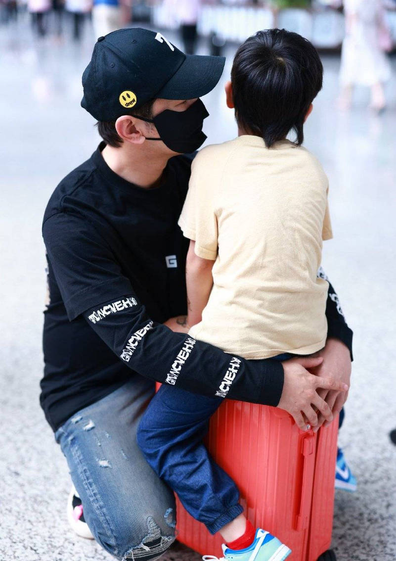 黃曉明帶著兒子現(xiàn)身機場 小海綿玩轉(zhuǎn)行李箱超可愛