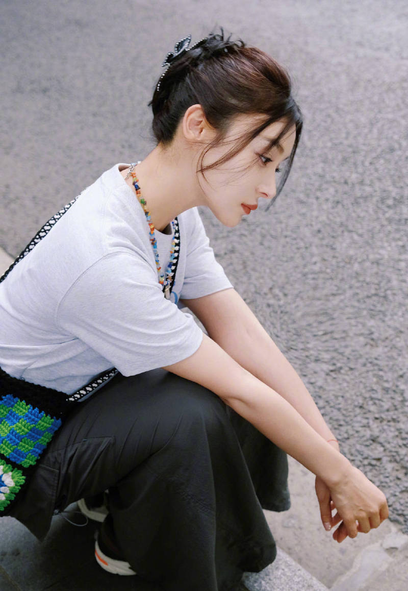 袁姍姍分享夏日街拍 白T搭配闊腿褲清新活力
