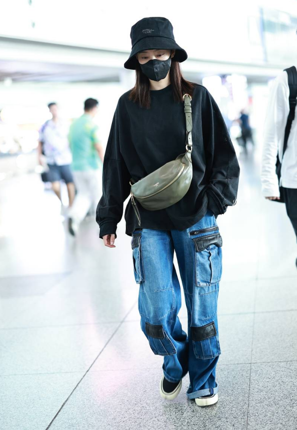9月18日,北京,張小斐穿黑色衛(wèi)衣牛仔褲現(xiàn)身機(jī)場(chǎng),頭戴漁夫帽神采飛揚(yáng)。