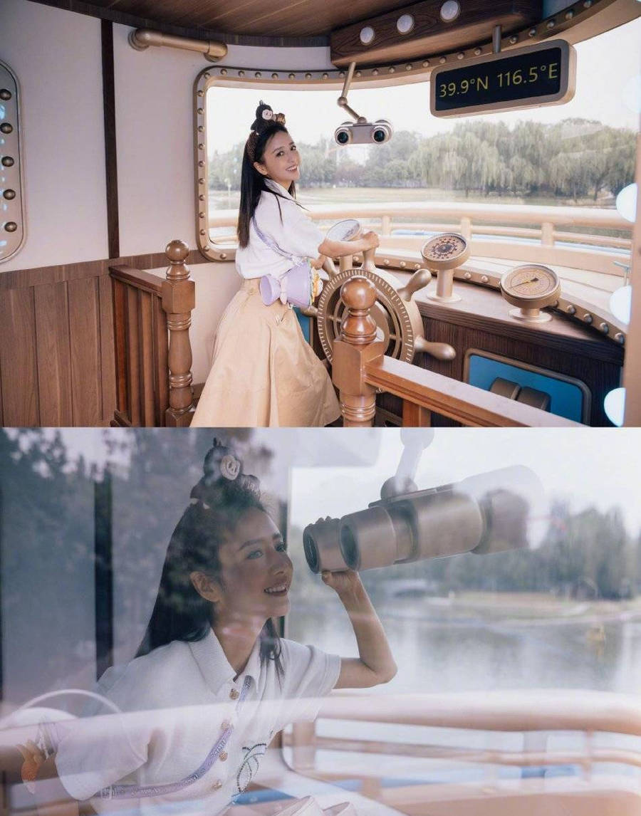 二人置身游樂場童話風(fēng)滿滿。