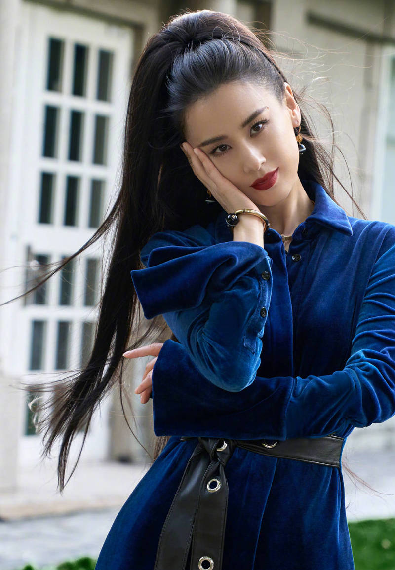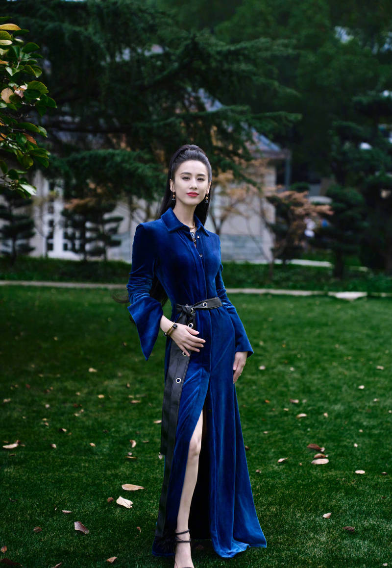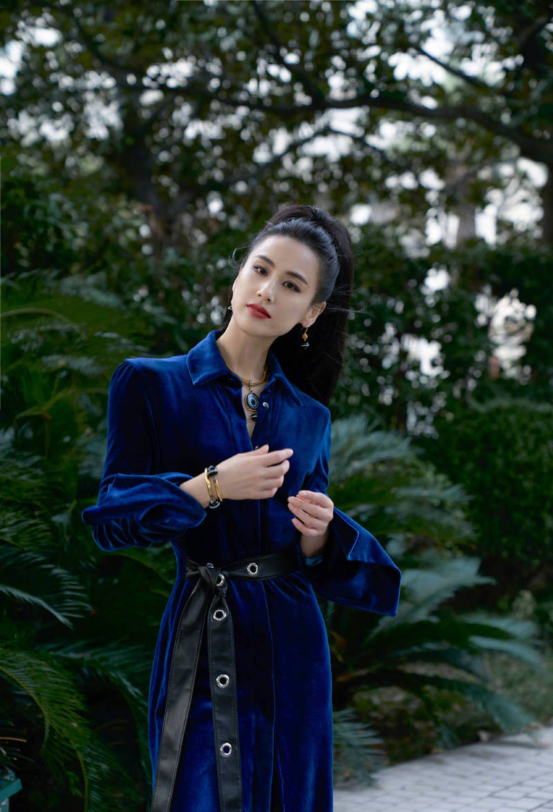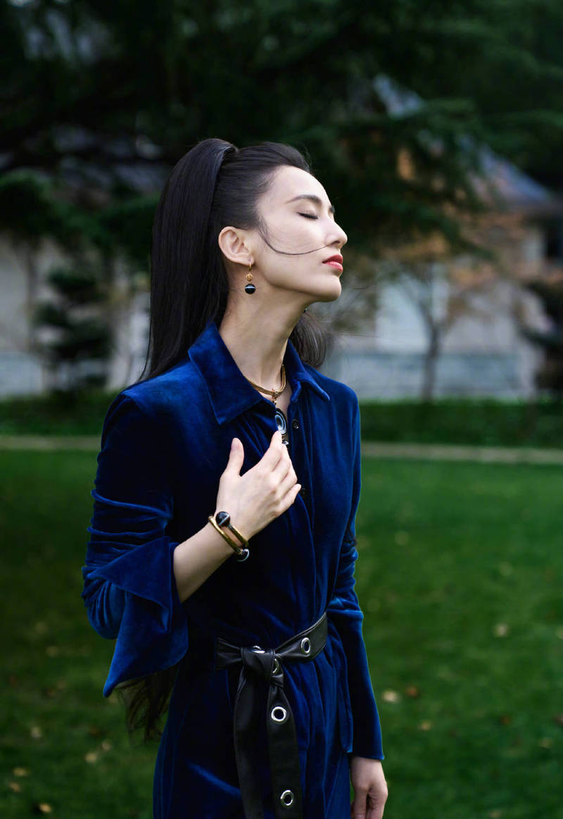 近日,黃圣依(明星經(jīng)紀公司)曬出一組室外草地寫真。黃圣依身穿藍色冰染天鵝絨長裙,高馬尾利落帥氣,烈焰紅唇,女王氣場十足。