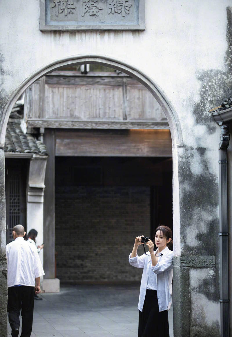 李冰冰發(fā)絲低挽氣質(zhì)溫婉松弛 漫游古鎮(zhèn)悠然愜意