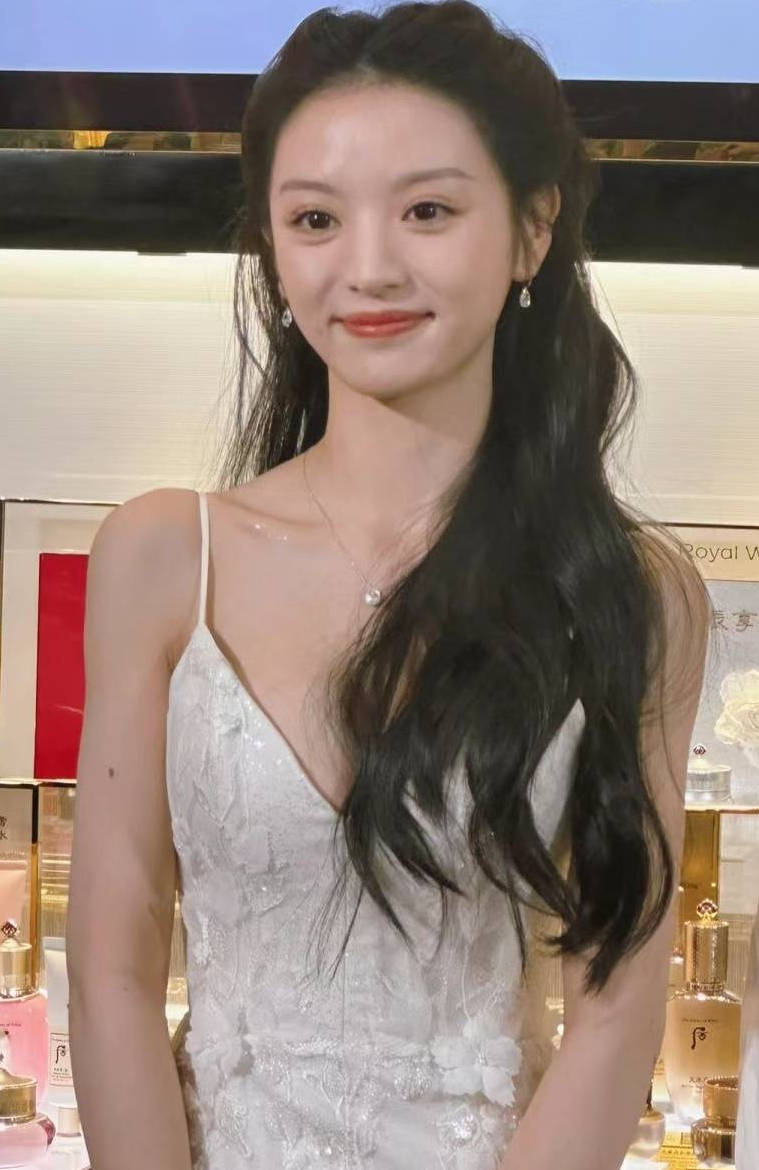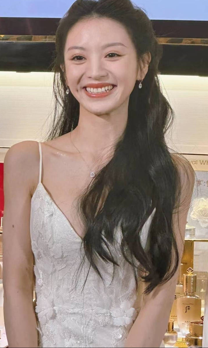 10月28日,田曦薇穿著一件白色吊帶裙出席某活動,梳著公主發(fā)型,甜美元氣。
