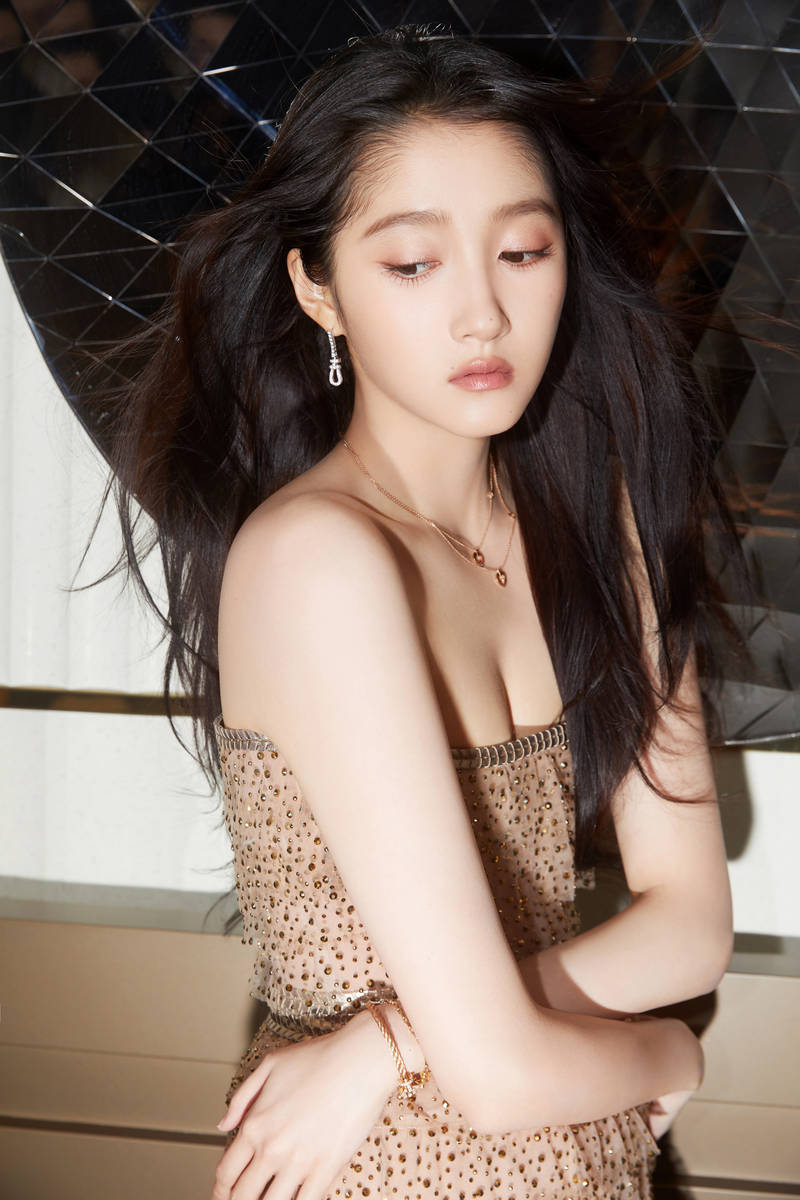 11月11日晚,關(guān)曉彤一組活動造型圖釋出,身穿香檳色抹胸紗裙貴氣十足,身材比例優(yōu)越。