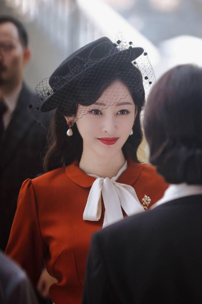 張?zhí)鞇蹠衩駠A麗風(fēng)片場(chǎng)照 雨中撐傘復(fù)古感十足