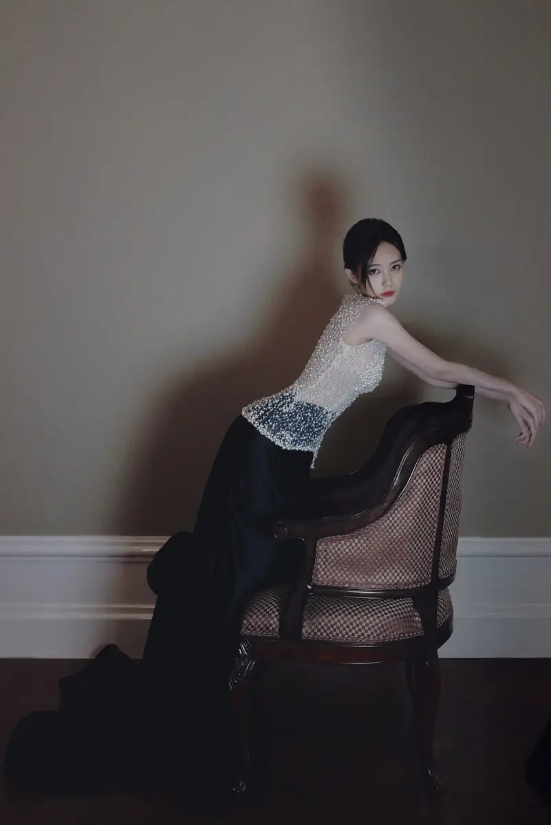 李一桐中式典雅風(fēng)造型養(yǎng)眼 穿珍珠無袖上衣好性感