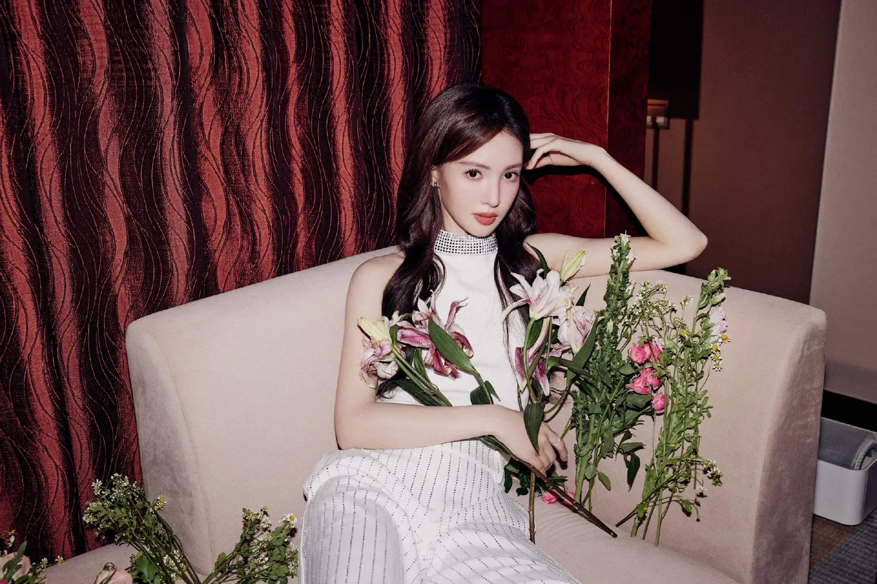 金晨純白造型簡(jiǎn)約大氣 手捧鮮花清香溢出屏幕