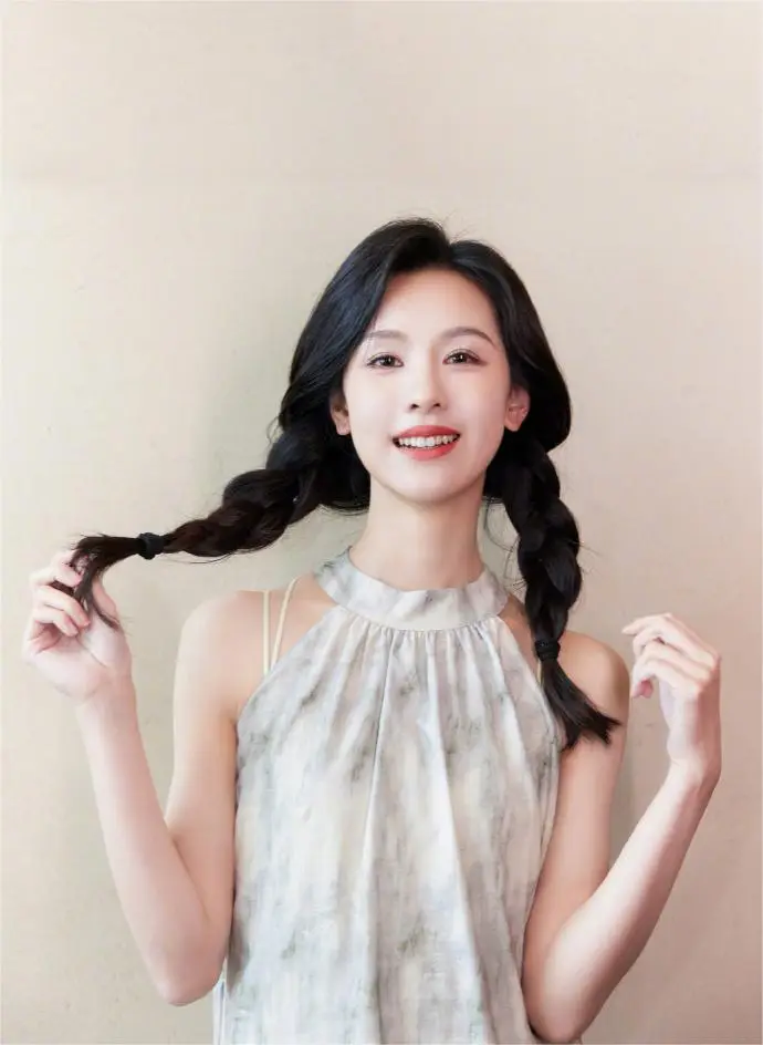 陳都靈雙手扯開(kāi)麻花辮,閉眼甜笑,好靈動(dòng)的少女感!