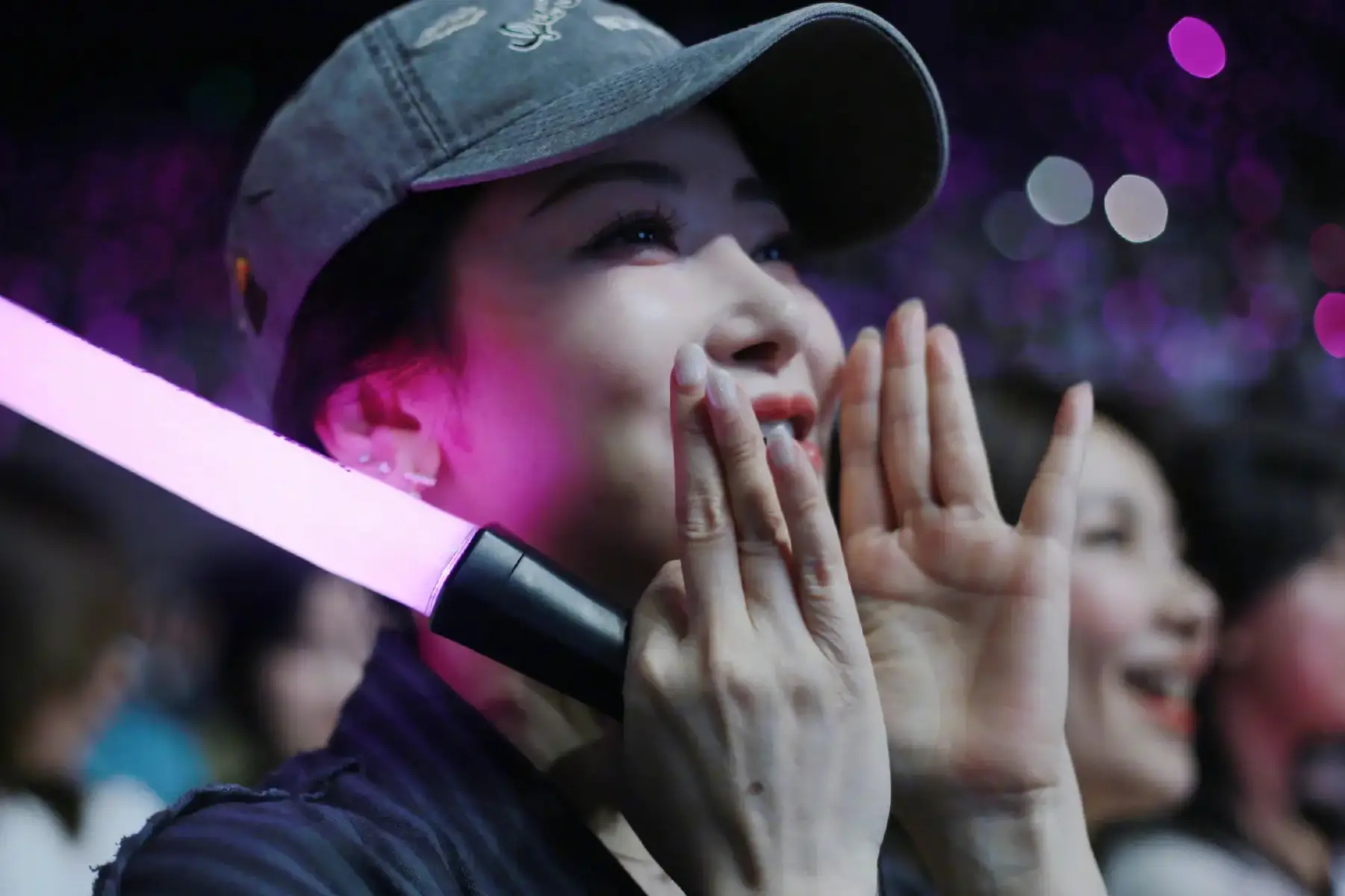 陳紫函手持應(yīng)援燈,大聲呼喊。
