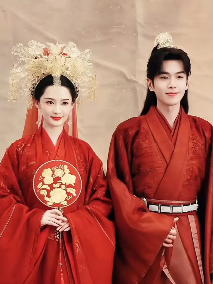 張若昀李沁穿紅色古裝婚服 戴3D打印鳳冠貴氣十足