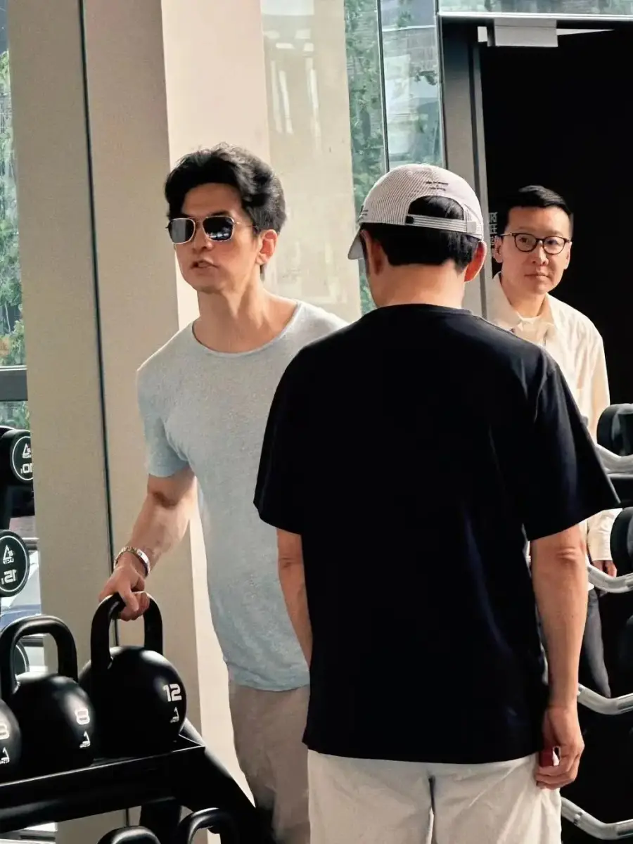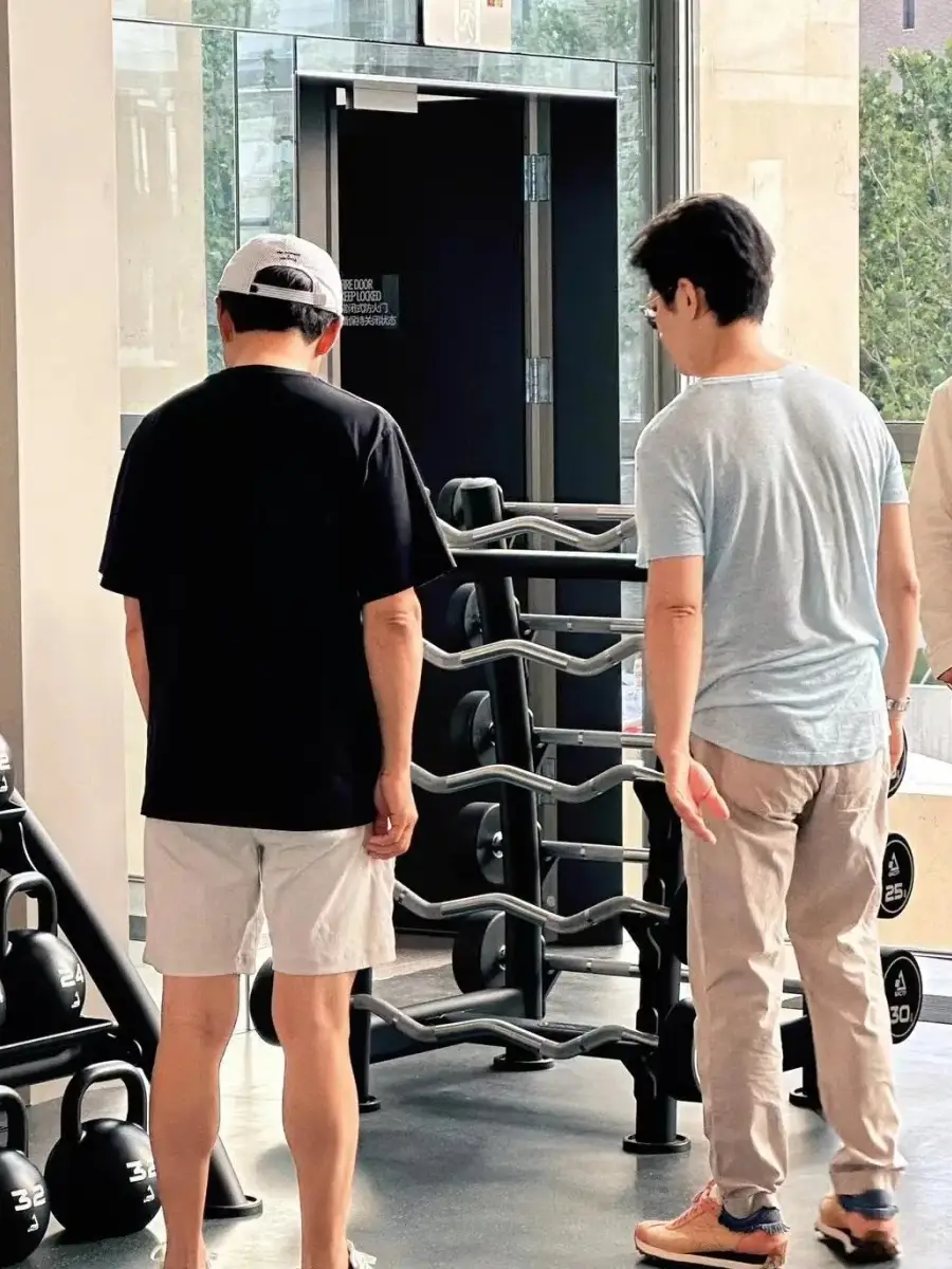 李健嘗試健身器械,動(dòng)作非常標(biāo)準(zhǔn)。