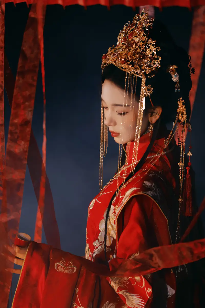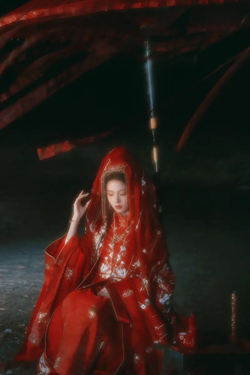 7月8日,陳瑤(明星經(jīng)紀(jì)公司)工作室發(fā)布一套組圖。陳瑤身著傳統(tǒng)古風(fēng)婚服“鳳冠霞披”,氛圍詭譎夢(mèng)幻。