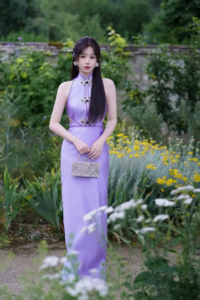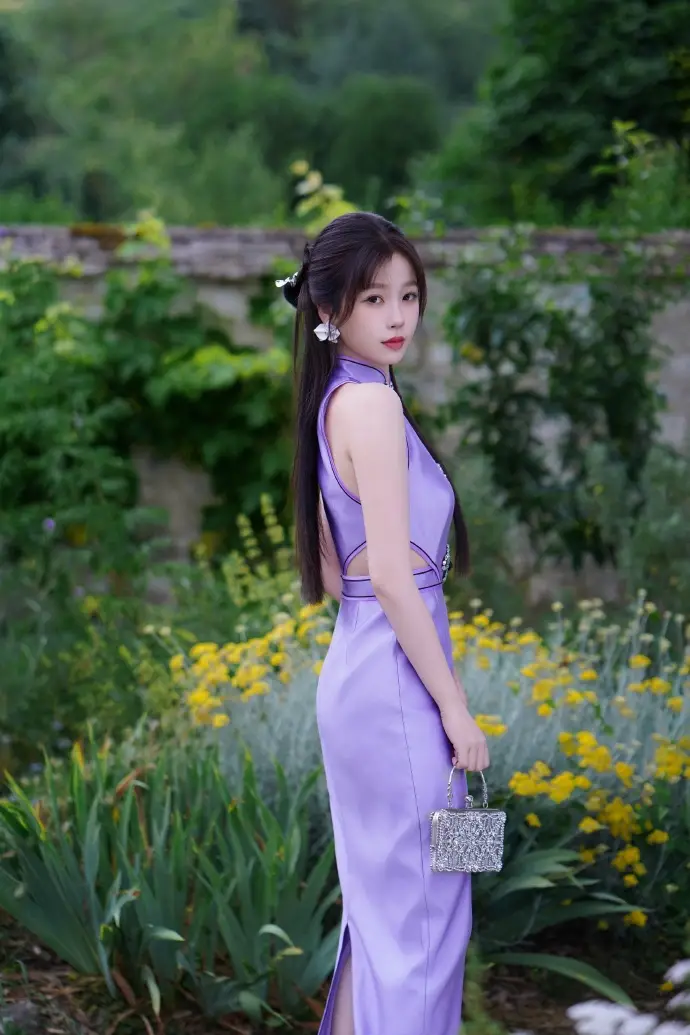 7月15日,虞書欣(明星經(jīng)紀(jì)公司)一組紫色旗袍造型寫真釋出,手提拎包身材婀娜多姿。