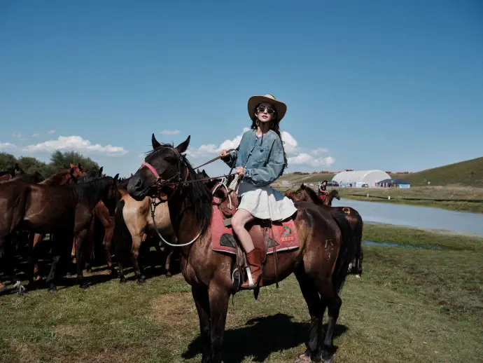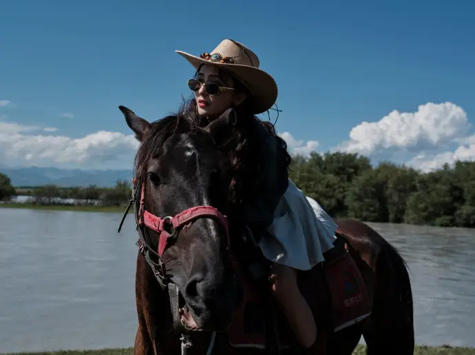 佟麗婭化身草原公主騎駿馬 頭戴牛仔帽酷颯有型