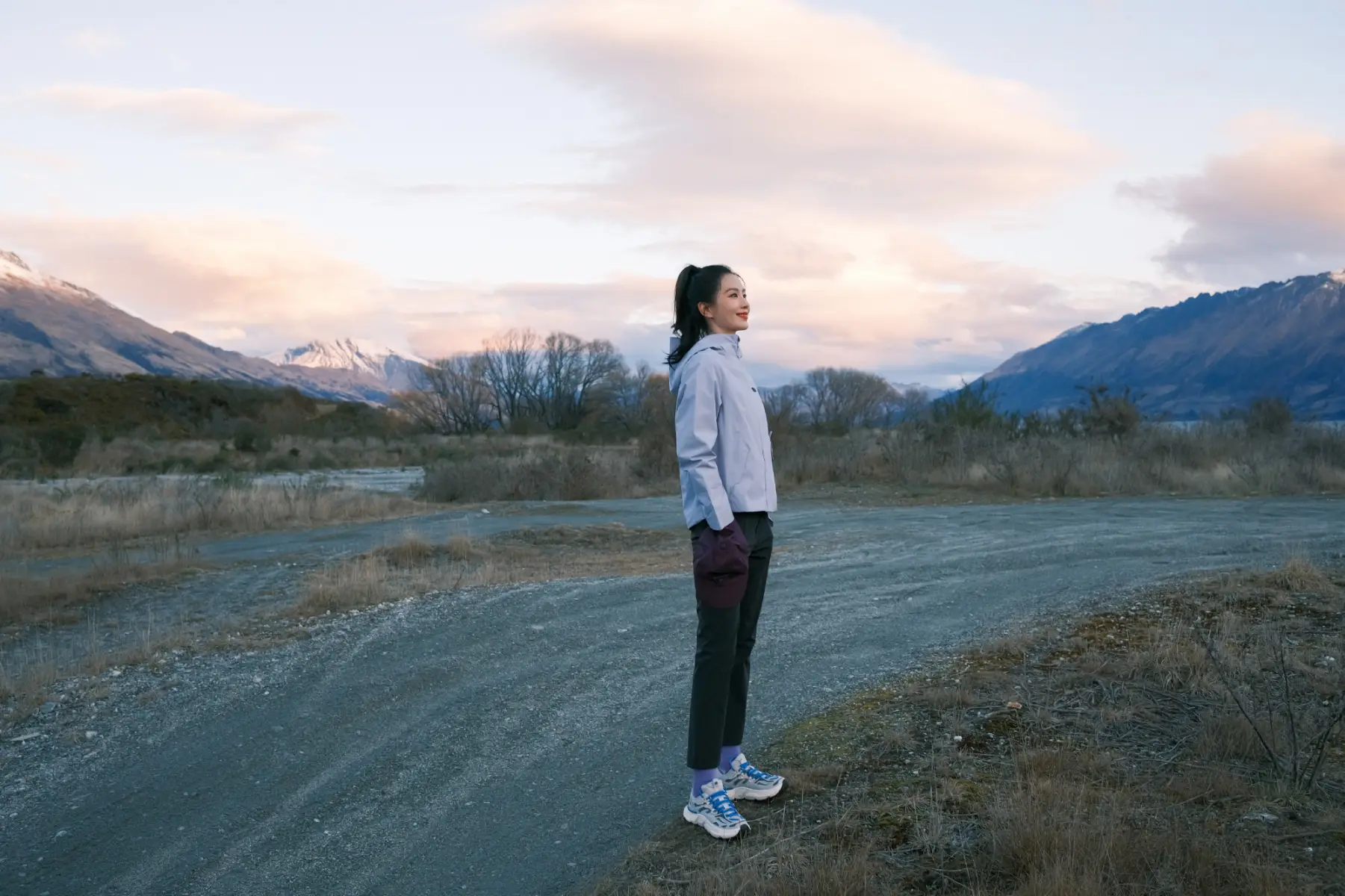 劉詩(shī)詩(shī)穿運(yùn)動(dòng)套裝漫步野外 放空自我與自然共鳴