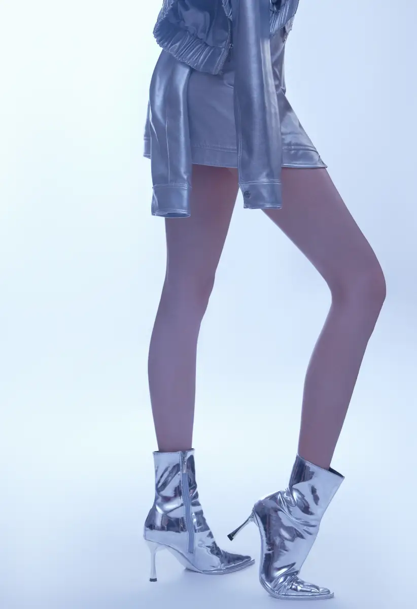 她一身液態(tài)金屬套裝光澤緩緩流動,詮釋潮酷姿態(tài)。