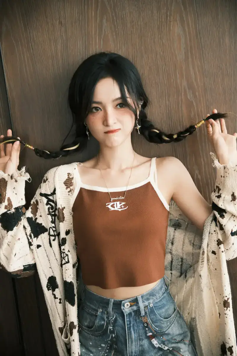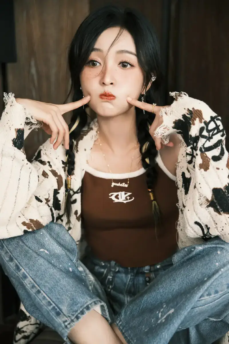 當(dāng)前位置:首頁>新聞中心>娛樂新聞>吳宣儀穿棕色吊帶嘟嘴賣萌可愛十足 搭配麻花辮造型鬼馬俏皮