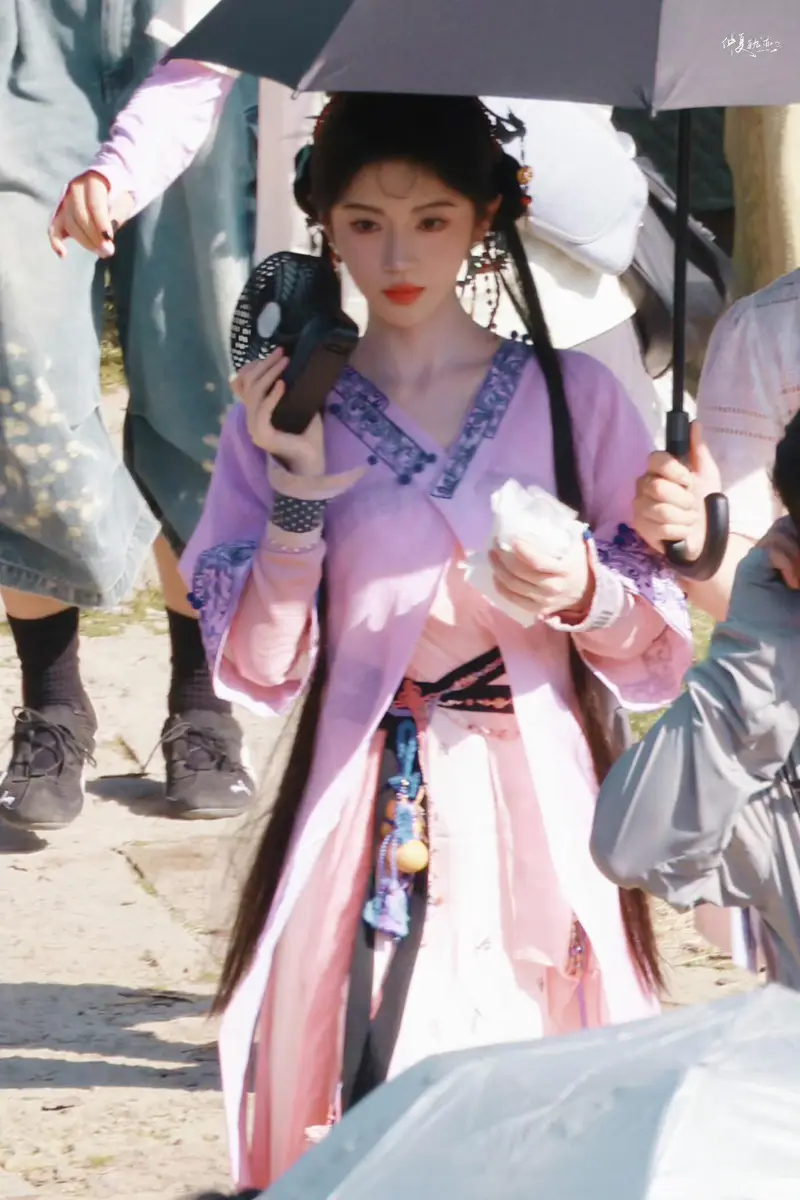 日前,鞠婧祎拍攝《來戰(zhàn)》路透曝光,照片中她穿著粉紫色相間的古裝,衣領(lǐng)設(shè)計(jì)很有新中式的韻味。