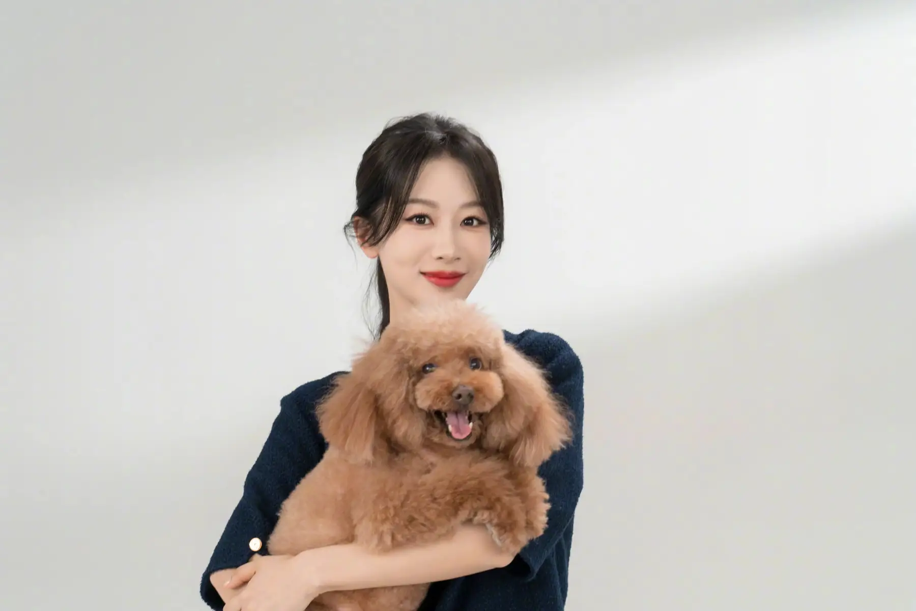楊紫學(xué)院風(fēng)造型嬌俏淑女 懷抱寵物狗鄰家感十足