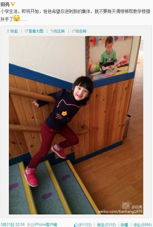 田亮稱cindy將上小學(xué),調(diào)侃不要幫學(xué)?!安练鍪帧?/a>
