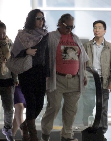 連日來為《變形金剛4》拍攝的李冰冰(微博)(微信號(hào):libingbinglove)穿上黑色性感西裝戲服,不但與導(dǎo)演邁克爾-貝合影,還被其捏臉,兩人關(guān)系融洽。
