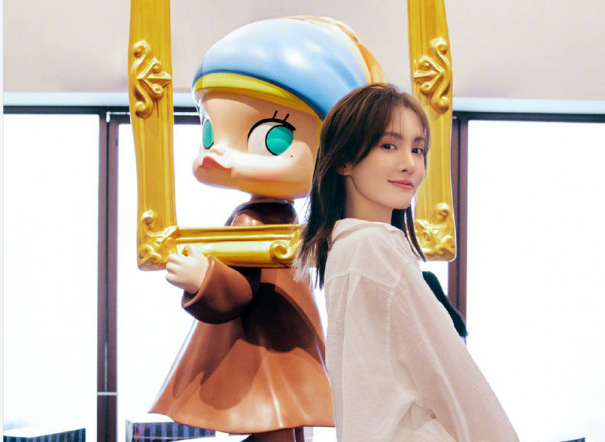 金晨穿白襯衫游逛樂園 與大型玩偶合影少女心爆棚