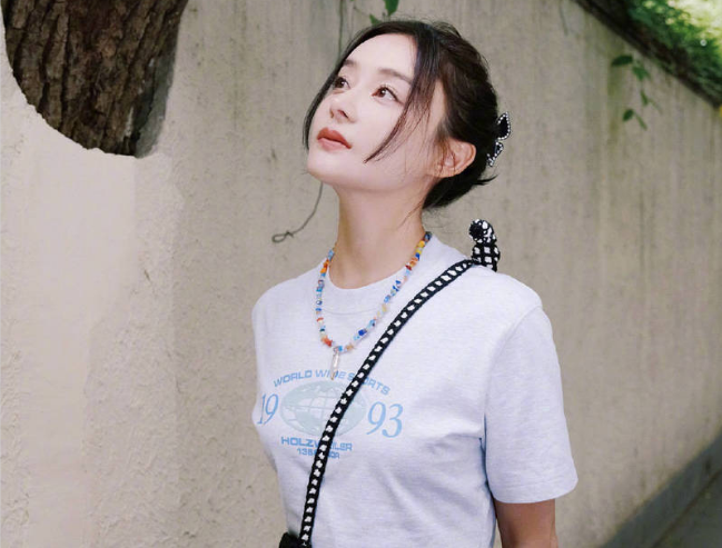 袁姍姍分享夏日街拍 白T搭配闊腿褲清新活力