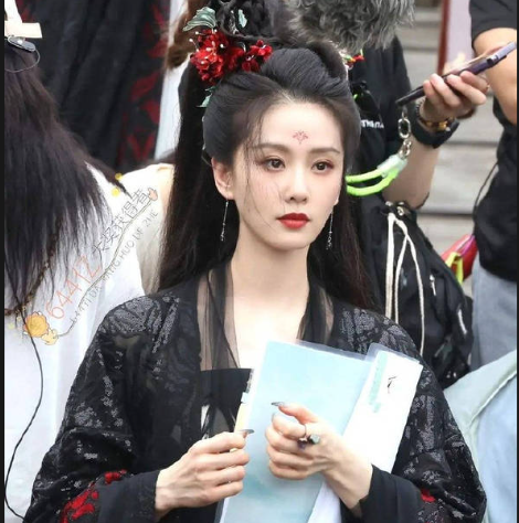 6月24日,一組劉詩詩(明星經(jīng)紀(jì)公司)新劇古裝路透曝光,照片中劉詩詩黑裙紅唇造型冷酷。