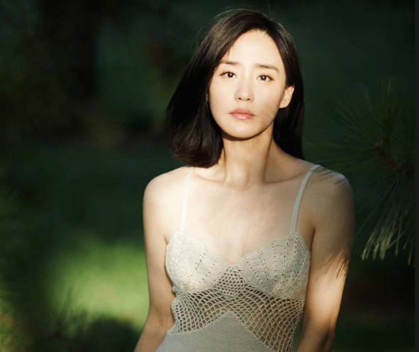組圖王智穿吊帶鏤空裙秀豐腴身姿 綠意盎然悠閑愜意