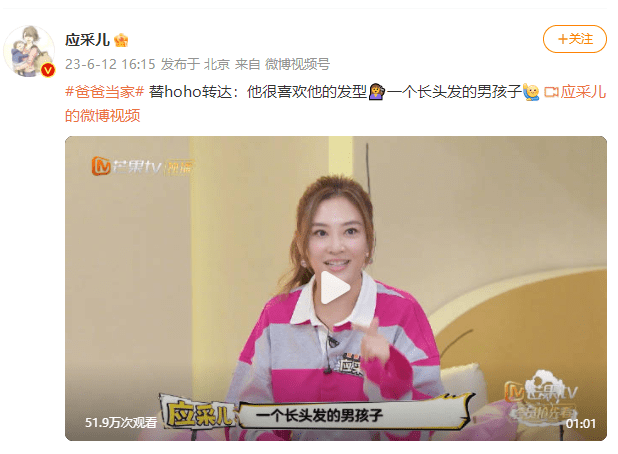 應采兒回應把小兒子當成女孩養(yǎng):會讓他繼續(xù)留長發(fā)