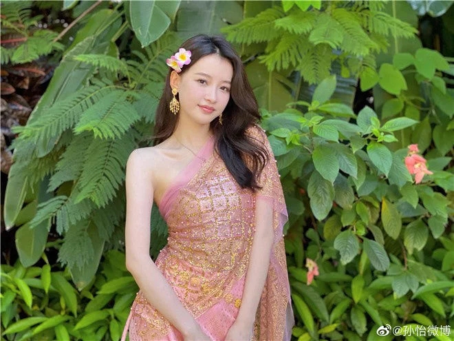 孫怡曬西雙版納游玩照 穿傣族服飾露香肩皮膚白皙